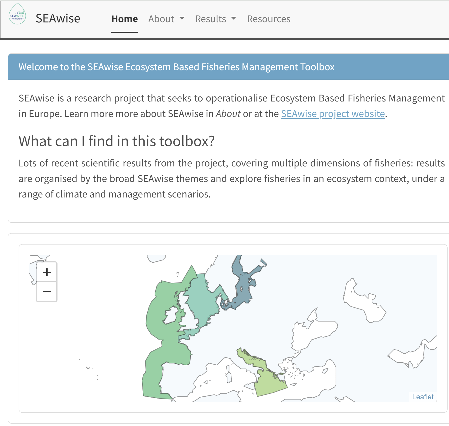 The goal of the SEAwise EBFM toolbox is to enable ecosystem- based fisheries management in Europe by disseminating the results of the SEAwise project. The EBFM toolbox is an entry point for users and stakeholders into results from the SEAwise project. The EBFM toolbox aims to improve understanding of the trade-offs involved in EBFM and reduce the barriers to its implementation by consolidating the results of the SEAwise project in a publicly accessible way.